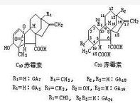 | 简介 | 赤霉素,是广泛存在的一类植物激素。其化学结构属于二萜类酸,由四环骨架衍生而得。可刺激叶和芽的生长。已知的赤霉素类至少有38种。赤霉素应用于农业生产,在某些方面有较好效果。例如提高无籽葡萄产量,打破马铃薯休眠;在酿造啤酒时,用GA3来促进制备麦芽糖用的大麦种子的萌发;当晚稻遇阴雨低温而抽穗迟缓时,用赤霉素处理能促进抽穗;或在杂交水稻制种中调节花期以使父母本花期相遇等。 |