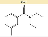 | 简介 | 避蚊胺 英文名:DEET 化学名称:N,N-二乙基间甲苯酰胺 避蚊胺分子结构图国际理论和应用化学联合会(ICSU)将其命名为:N,N-Diethyl-3-methylbenzamide 其他英文名:N,N-Diethyl-m-toluamide 分子式:C12H17NO 分子量:191.27 CAS:134-62-3 沸点:288-292 °C 易挥发,并且包含人类的汗液和气息,通过阻断昆虫嗅觉受体的1辛烯- 3 -醇起效。比较流行的理论是避蚊胺有效地使昆虫失去对人类或动物发出特殊气味的感官。正如人们初期所猜想,避蚊胺并没有影响到昆虫对二氧化碳的嗅觉能力。 常温下, 避蚊胺是淡黄色液体。 它能由二乙基的和甲基苯甲酸制成。它还能由酰基氯和乙胺制成。此外,它还可由汞,在真空环境中,1.316×10-3气压,111°C,蒸馏而得。 |