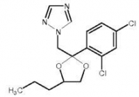 | 简介 | 中文通用名称: 丙环唑,英文通用名称: propiconazole, 化学名称:1-[2-(2,4-二氯苯基)-4-丙基-1,3-二氧戊环-2-甲基]-1氢-1,2,4三唑 分 子 式: C15H17Cl2N3O2 分 子 量: 342.2 一种具有保护和治疗作用的内吸性三唑类杀菌剂,可被根、茎、叶部吸收,并能很快地在植物株体内向上传导,防治子囊菌,担子菌和半知菌引起的病害,特别是对小麦全蚀病、白粉病、锈病、根腐病,水稻恶菌病,香蕉叶斑病具有较好的防治效果。 |