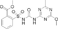 甲磺隆 又称:合力 ISO通用名称:metsulfuron-methyl 分子式:C14H15N5O6S 毒性:低毒 化学名称:2-[(4-甲氧基-6-甲基-1,3,5-三嗪基-2-基 )脲基磺酰基]苯甲酸甲酯 Metsulfuron-methyl is a residual sulfonylurea herbicide that kills broadleaf weeds and some annual grasses. It is a systemic compound with foliar and soil activity, that inhibits cell division in shoots and roots. It has residual activity in soils, allowing it to be used infrequently but requiring up to 22 months before planting certain crops (sunflowers, flax, corn, or safflower). It has very low toxicity to mammals, birds, fish, and insects, but is a moderate eye irritant.