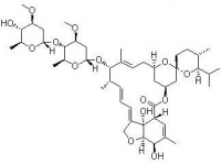 | 简介 | 伊维菌素是新型的广谱、高效、低毒抗生素类抗寄生虫药,对体内外寄生虫特别是线虫和节肢动物均有良好驱杀作用。但对绦虫、吸虫及原生动物无效。 大环内酯类抗寄生虫药对线虫及节肢动物的驱杀作用,在于增加虫体的抑制性递质γ-氨基丁酸〔GABA)的释放,以及打开谷氨酸控制的Cl离子通道,增强神经膜对Cl的通透性,从而阻断神经信号的传递,最终神经麻痹,使肌肉细胞失去收缩能力,而导致虫体死亡。 伊维菌素Ivermectin 伊维菌素 是由阿维链霉菌(streptomyces avermitilis)发酵产生的半合成大环内酯类多组分抗生素。主要含伊维菌素B1(Bla+B1b )不低于93%,其中Bla不得少于85%。 伊维菌素B1即22,23-双氢阿维菌素B1 CAS Number:70288-86-7 Name: Ivermectin Formula: Unspecified Deleted CAS: 74564-75-3|1014990-52-3|118710-50-2 Synonyms: Ivermectin EP6; EINECS: 274-536-0