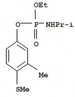 | 简介 | 农药名称 中文名称 苯线磷 英文名称 fenamiphos 其他名称 力满库,克线磷,苯胺磷,线威磷 CAS No.:22224-92-6 EINECS号:244-848-1 分 子 式:C13H22NO3PS 分 子 量:303.35 农药毒性 高毒杀线虫剂。原药雄性大鼠急性经口LD50为15.3mg/kg,急性经皮LD50约500mg/kg,急性吸入LC50为110-175mg/L(1h),在试验剂量下,对兔皮肤和眼睛无刺激作用,无致癌、致畸、致突变作用,对鱼类毒性中等。按推荐剂量使用,对蜜蜂和蚕无害,对鸟类有毒,对家禽剧毒。 农药特点 具有触杀和内吸作用的杀线虫剂。药剂从根部进入植物体,在植物体内上下传导并能很好地分布在土壤中,借助雨水和灌溉水进入作物根层。作物有良好的耐药性,不会产生药害。 适用范围 是较理想的防治柑橘、花生、香蕉、咖啡、棉花、烟草杀线虫剂。 CAS Number:22224-92-6 Name: Phosphoramidicacid, N-(1-methylethyl)-, ethyl 3-methyl-4-(methylthio)phenyl ester Superlist Name: Fenamiphos Formula: C13H22NO3PS Molecular Weight: 303.39 Synonyms: Phosphoramidicacid, (1-methylethyl)-, ethyl 3-methyl-4-(methylthio)phenyl ester (9CI);Phosphoramidic acid, isopropyl-, ethyl 4-(methylthio)-m-tolyl ester (8CI);B68138;BAY 68138;Bayer 68138;Ethyl 3-methyl-4-(methylthio)phenyl(1-methylethyl)phosphoramidate;Ethyl 4-(methylthio)-m-tolylisopropylphosphoramidate;Fenamifos;Fenamithion;Nemacur;NemacurP;Phenamiphos; EINECS: 244-848-1 Density: 1.14 g/cm3 Melting Point: 49 °C Boiling Point: 375.6 °C at 760 mmHg Flash Point: 181 °C Solubility: 0.07 g/100 mL in water Appearance: Brown waxy solid or colorless solid